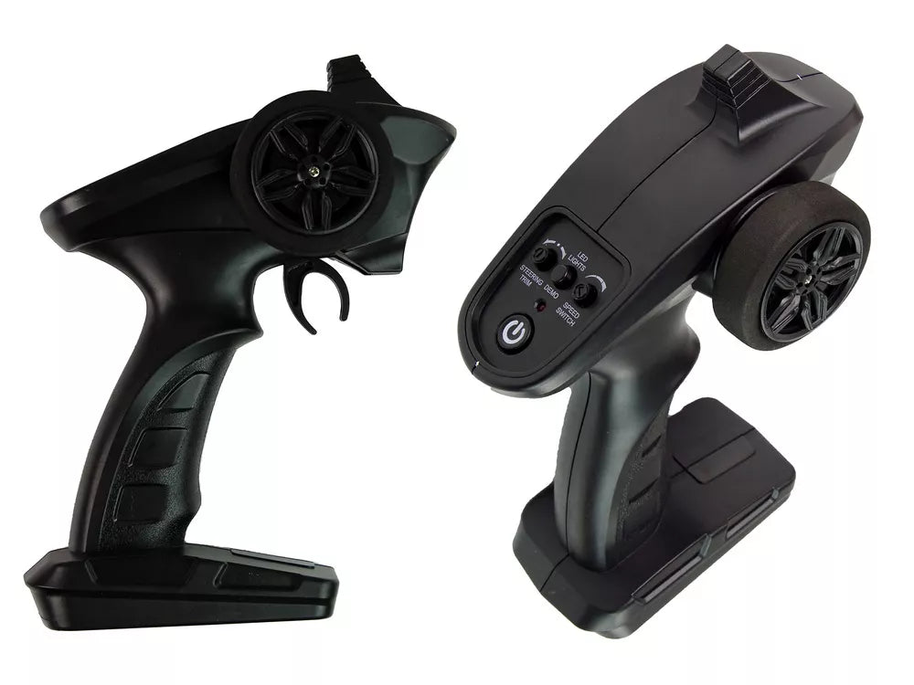Rinkinį taip pat sudaro specialus nuotolinio valdymo pultas, kurio dėka galime sklandžiai valdyti žaislą pirmyn, atgal ir į šonus, užtikrinant visišką kiekvieno judesio kontrolę. Taip pat galite suaktyvinti žavų autopiloto variantą, kuris leis jums kurį laiką atsikvėpti. Paskutinis mygtukas skirtas greičiui nustatyti. Trumpas vidurinio mygtuko paspaudimas atgaivins žaislą dėl apšvietimo, kuris suteikia vizualinį efektą jo fenomenaliai išvaizdai. Jo matmenys yra: 8 cm x 19,5 cm x 6 cm, todėl jis puikiai telpa rankoje, suteikdamas jums visišką kontrolę jį naudojant.