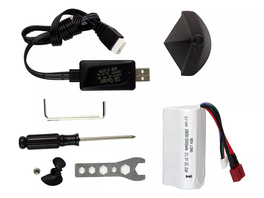 Ši motorinė valtis, aprūpinta baterija, kuri yra įtraukta į rinkinį, yra paruošta jaudinančiam pasivažinėjimui. Norėdami pradėti nuotykį, tiesiog nuimkite dangtelį nuo viršutinės dalies ir įdėkite jį. Pilnai išnaudojus energiją, išimkite jį ir atvėsinkite, kad užtikrintumėte optimalų veikimą ir ilgalaikį naudojimą. Šis žaislas pasiekia įspūdingą 35 km/h greitį, o važiavimo laikas yra apie 10 minučių.