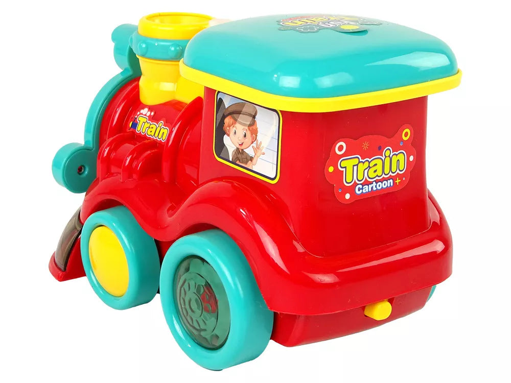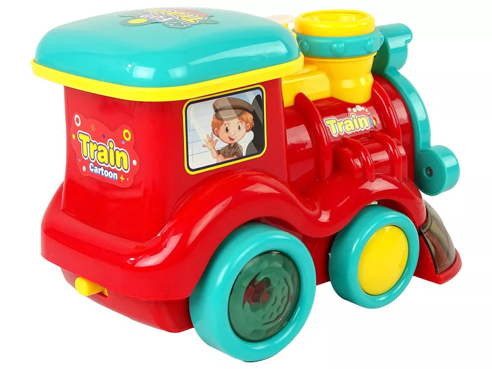 Muilo burbulų lokomotyvas važiuoja su šviesomis ir garsais