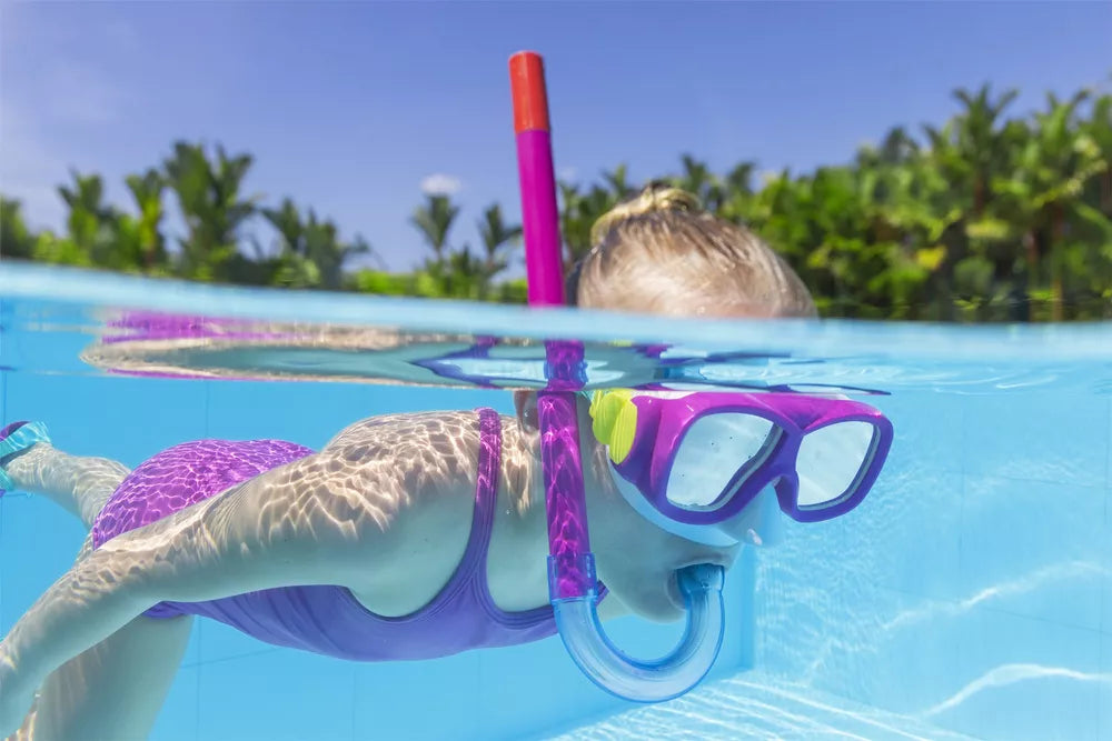 Nardymo rinkinys Kaukė, vamzdelis, plaukmenys Rožinis Bestway 25019