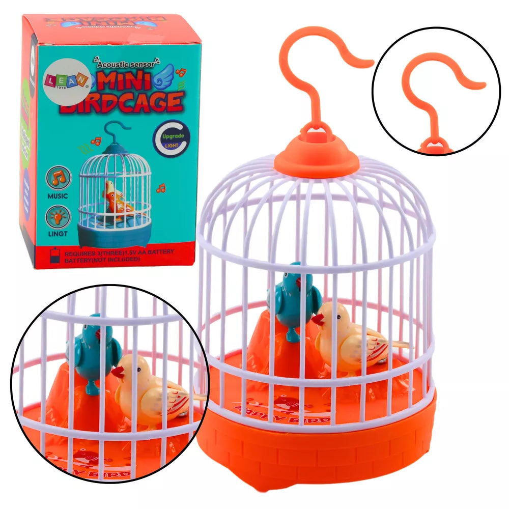 Narvuojamas paukščių narvelis su šviesomis ir garsais, oranžinis