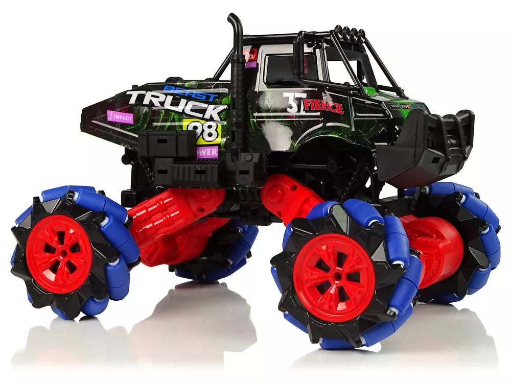 Visus automobilių sporto gerbėjus sudomins unikalaus dizaino visureigis. Pristatome unikalų modelį su didžiuliais ratais ir besisukančiais mažais voleliais. Puikus modelis driftui, galbūt jau laikas lenktynėms? Šis modelis patenkins ne tik mažuosius, bet ir vyresnius entuziastus.