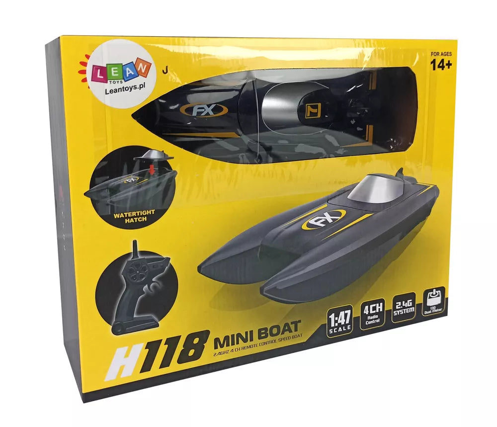 Vairuojamas motorlaivis turi specialią konstrukciją, kuri neleidžia vandeniui patekti į vidų. Išvaizda, aptaki motorlaivio forma patraukia dėmesį. Jis puikiai tinka lenktynėms vandenyje! Jis perduoda 2.4 Ghz dažniu, kuris nesukelia trukdžių vairuojant dvi transporto priemones. Jis turi du nepriklausomus variklius, todėl yra manevringas, greitas ir patikimas. Nuotolinio valdymo pultas yra patogus, puikiai guli rankose, juo galima vairuoti pirmyn, atgal ir į šonus.