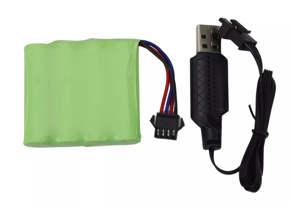 Automobilis maitinamas 6 V 500 mAh baterija, kuri yra rinkinio dalis. Baterijos įkroviklis yra komplekte.