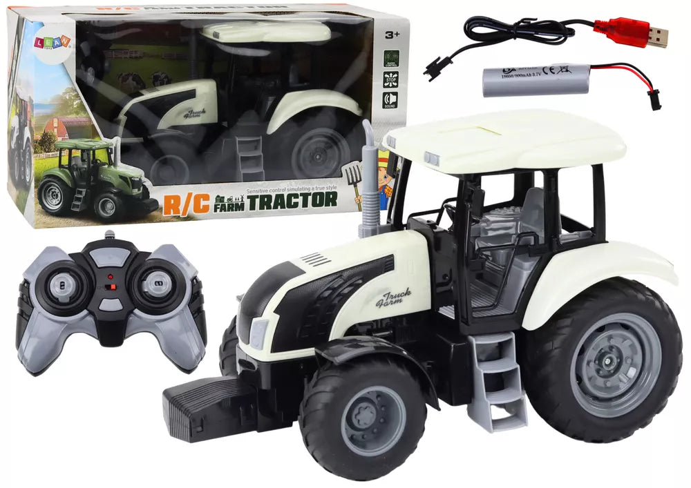 Nuotoliniu būdu valdomas RC traktorius 2.4G, baltas, su garsais