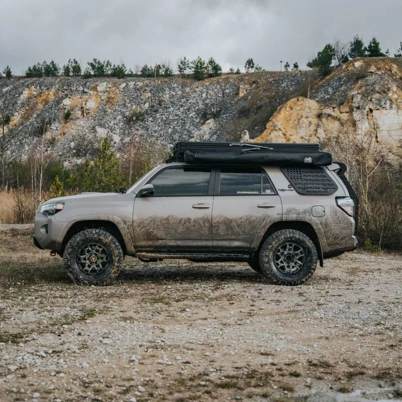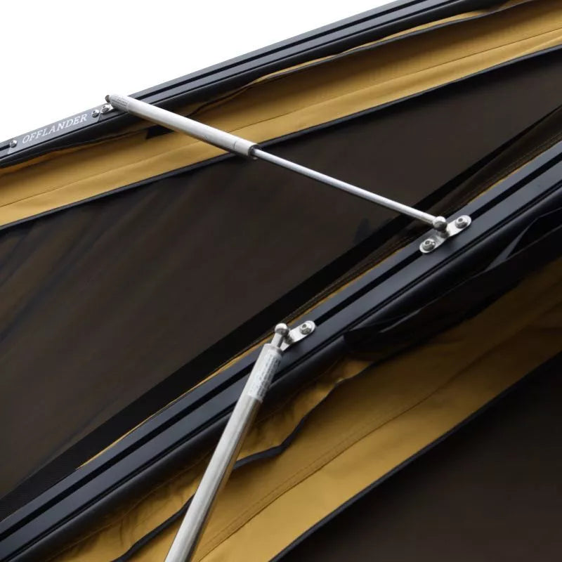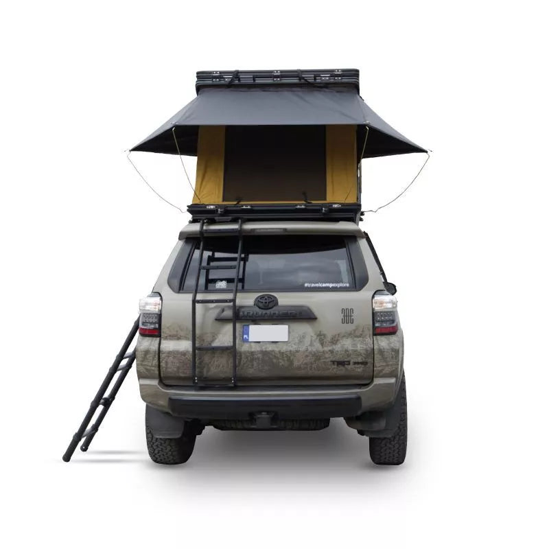 Priedai: teleskopinės kopėčios, batų maišelis, kišenės aksesuarams, LED apšvietimas maitinimo blokui prijungti, matinė nuo kondensacijos apsauganti pagalvėlė, palapinės uždarymo rankenėlė, montavimo komplektas