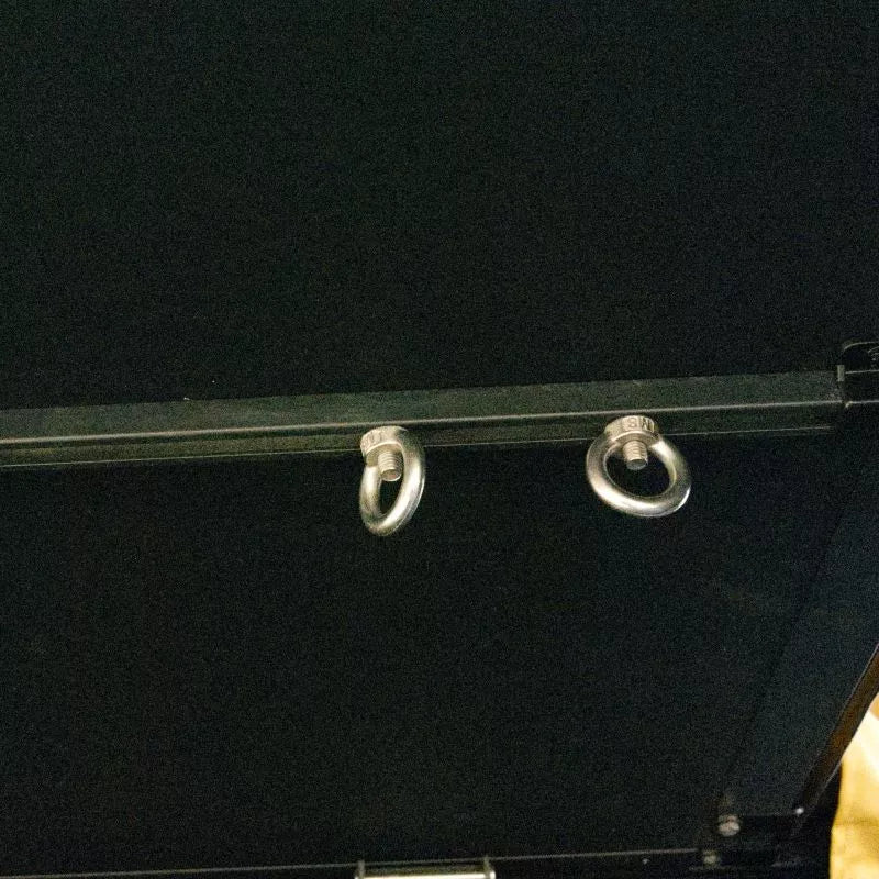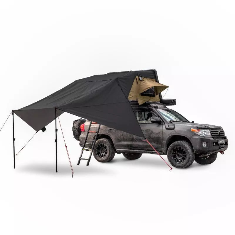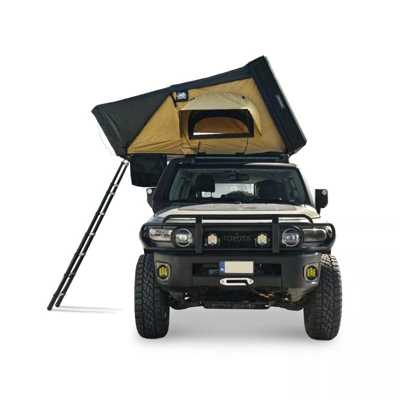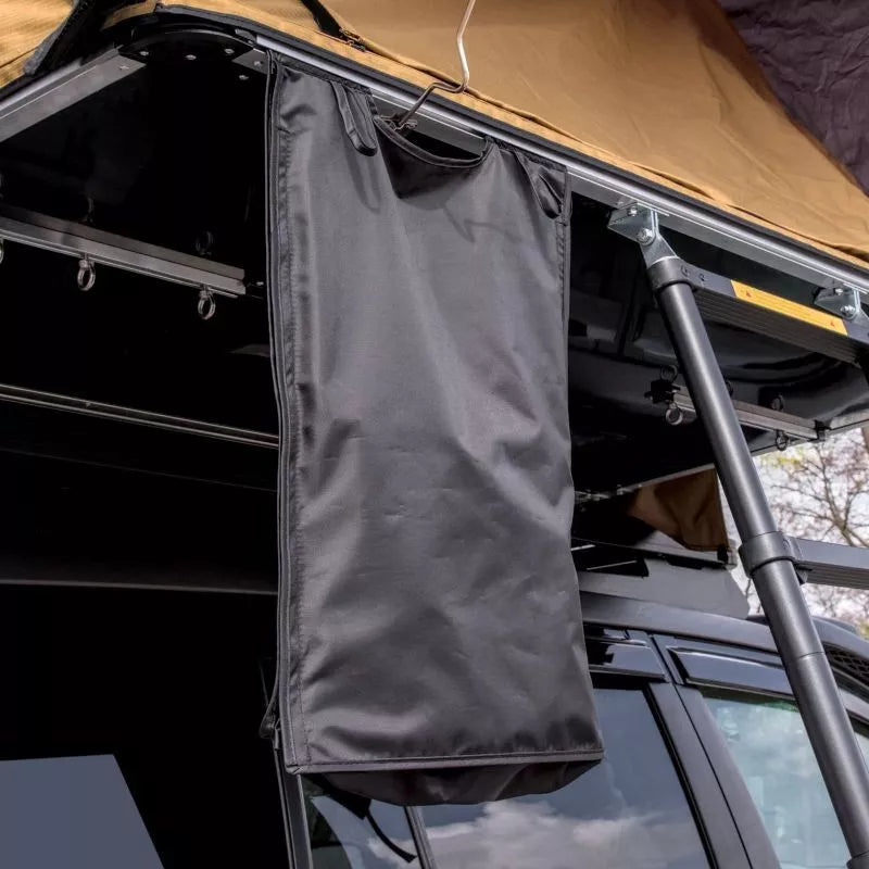 Priedai: teleskopinės kopėčios, batų maišelis, kišenės aksesuarams, LED apšvietimas maitinimo blokui prijungti, nuo kondensato apsaugantis kilimėlis, papildomi T-ardsių tvirtinimo varžtai, rankena stovyklavietei uždaryti.