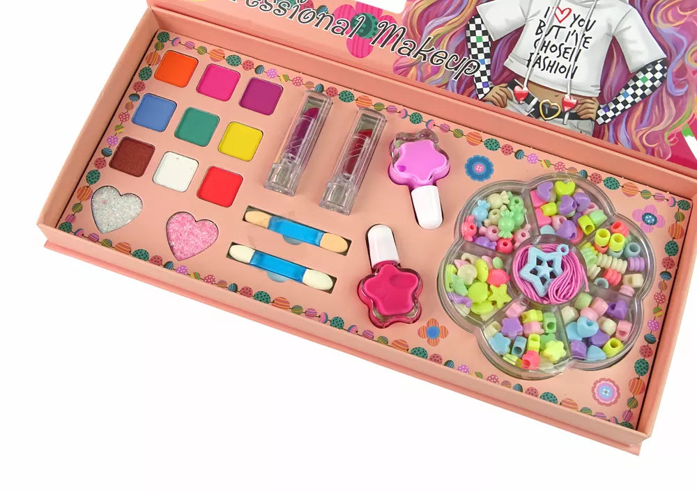 2in1 makiažo ir papuošalų rinkinys yra puikus žaislas jauniesiems menininkams. Šis kūrybiškas rinkinys leidžia vaikams išreikšti savo vaizduotę tiek kuriant makiažą, tiek kuriant savo papuošalus. Rinkinį sudaro net 9 skirtingų spalvų akių šešėliai ir 2 su blizgučių efektu, 2 lūpų dažai skirtingų atspalvių, 2 akių šešėlių paletės ir 2 rožiniai nagų lakai.