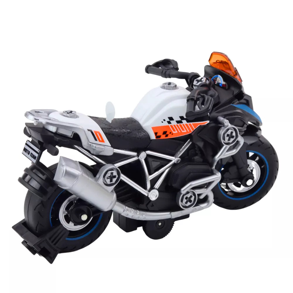 Juodas lenktyninis motociklas yra modernus konstruktorius, kuris sujungia dinamišką, sportišką išvaizdą su edukacine funkcija, suteikdamas vaikui ne tik pramogą, bet ir vertingą mokymąsi per žaidimą. Sukurtas atsižvelgiant į jauniausius automobilių entuziastus, motociklas leidžia savarankiškai surinkti ir išardyti elementus naudojant pridedamą atsuktuvą su dviem keičiamais antgaliais, kuris lavina loginį mąstymą, techninius įgūdžius ir rankų-akių koordinaciją.