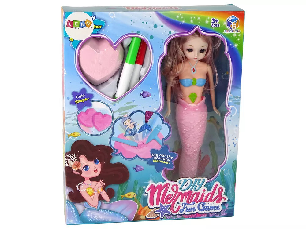 Šis daugiakomponentis rinkinys su undinėle lavins jūsų vaiko kūrybiškumą ir vaizduotę. Žaiskite su savo mažąja undinėle, papuoškite jos uodegą ir atraskite, ką ji slepia mažose širdelės formos uolienose. Sujungsite kasinėjimo linksmybes su meninių įgūdžių ugdymu.