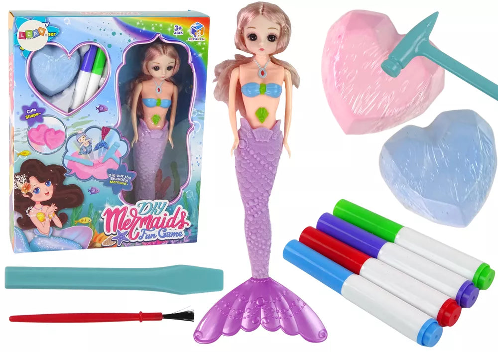 Daugiakomponentis rinkinys su undinėle lavins jūsų vaiko kūrybiškumą ir vaizduotę. Žaiskite su savo mažąja undinėle, papuoškite jos uodegą ir atraskite, ką ji slepia mažuose širdelės formos akmenyse. Derinsite kasinėjimo linksmybes su meninių įgūdžių ugdymu.