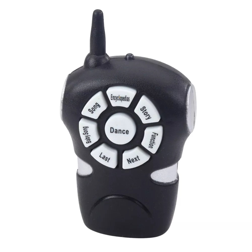 Nuotolinio valdymo pultelis leidžia lengvai valdyti robotą, o intuityvūs mygtukai leidžia aktyvuoti įvairius režimus, tokius kaip Šokis, Dainos, Pasakos, Enciklopedijos ir Kitas/Ankstesnis. Tai daro žaislą ne tik linksmu, bet ir palaiko vaikų pažintinę raidą.