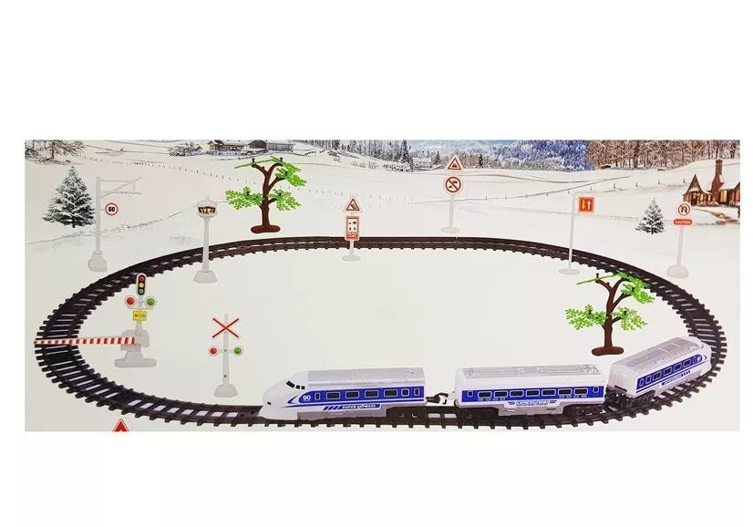 Lokomotyvas ir vagonai pagaminti iš aukščiausios kokybės plastiko, kuris užtikrina ilgalaikį patvarumą ir atskirų rinkinio priedų ilgaamžiškumą. Važiuojant lokomotyve, priekinėje dalyje įmontuota lemputė ir girdimi traukinio garsai. Trasos elementus galima sujungti skląsčiais ir pastatyti trasą, kurią leis tik jūsų vaizduotė, ir aplinkui pastatyti kelio ženklus. Tai taip pat gera pamoka apie kelių eismo taisykles.