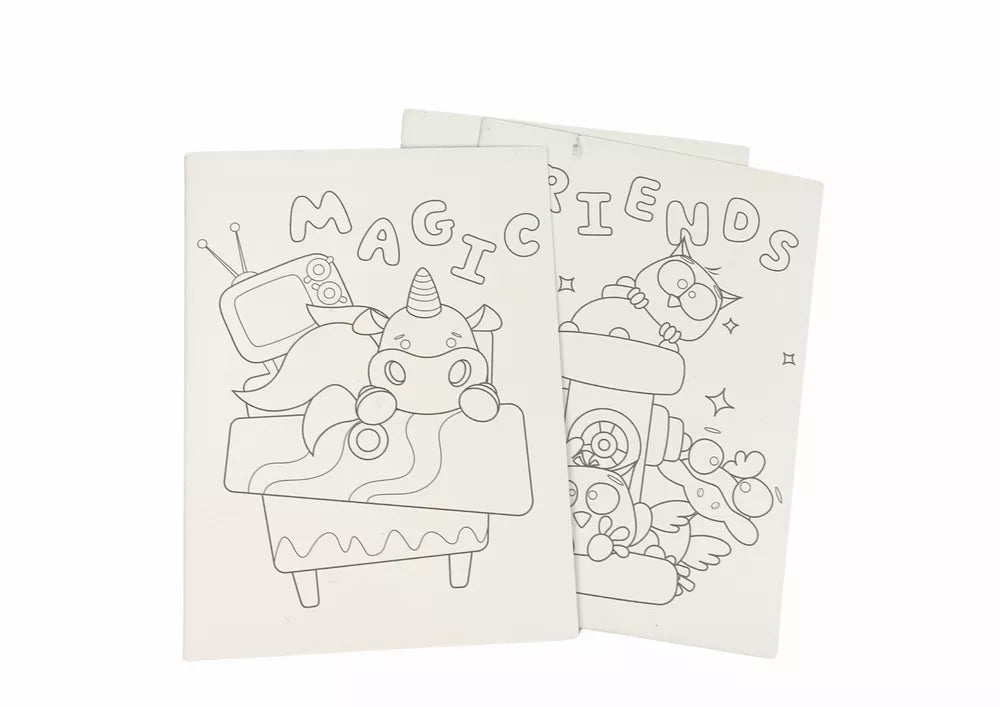 Kiekvieno paveikslėlio matmenys yra 13,5 cm x 18,5 cm, todėl jie puikiai tinka mažoms rankutėms. Be to, medinis braižymo pagaliukas yra 14 cm ilgio, todėl jį lengva valdyti žaidžiant.