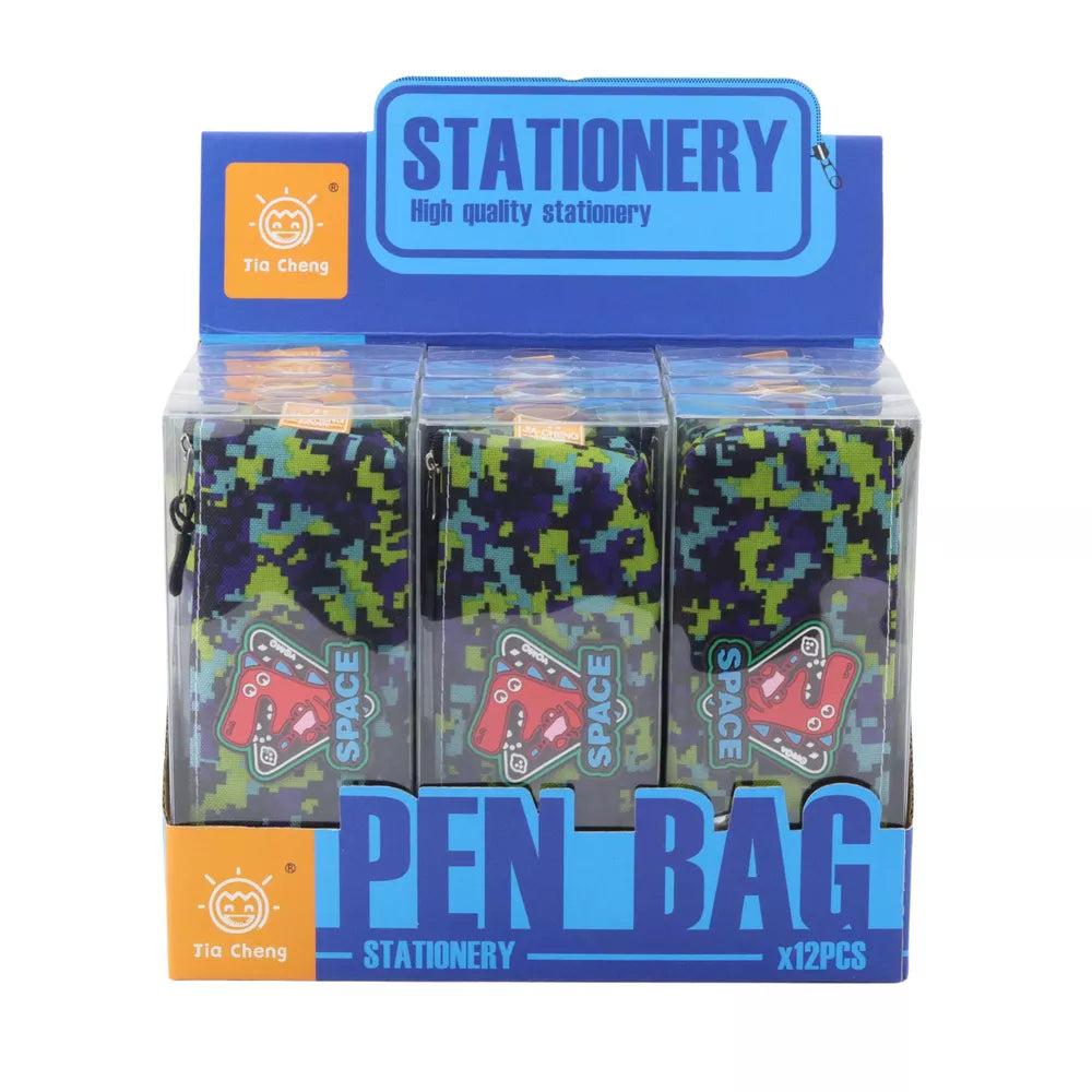 Unikalus dizainas vaikams, mėgstantiems kosmosą ir dinozaurus! Originalus raštas pikselių stiliumi mėlynos, žalios ir juodos spalvos tonais su kosminiu dinozauru, apginkluotu kosminiais ginklais, patraukia pieštukinės dėmesį. Idealiai tinka mokyklinėms priemonėms, patogiai laikomi būtiniausi reikmenys.