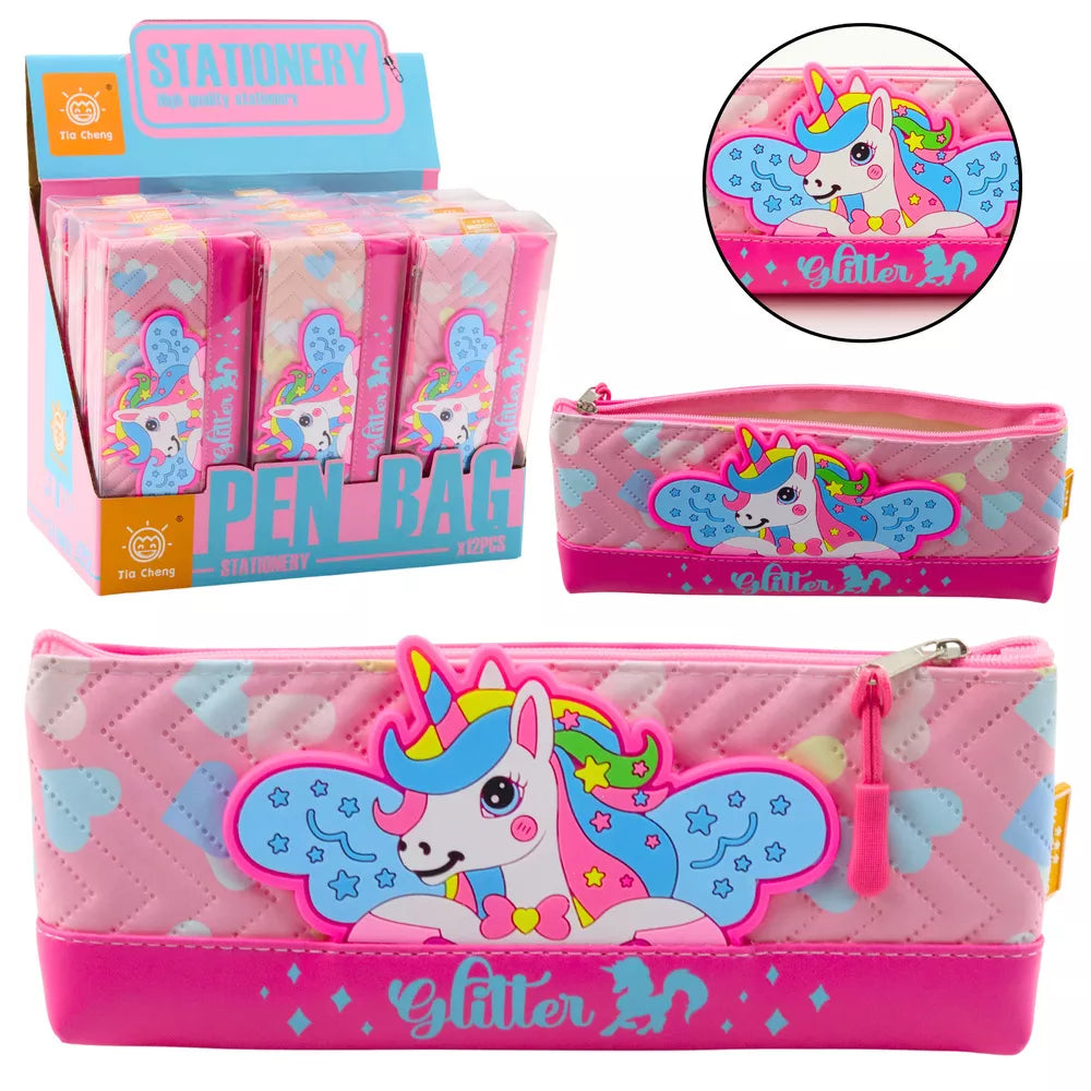 Žavingas vienaragio formos penalas, pagamintas iš į odą panašios medžiagos, puikiai tinkantis mokyklinėms priemonėms laikyti. Minkštas, patvarus ir saugus, atitinka CE ir EN71 standartus.