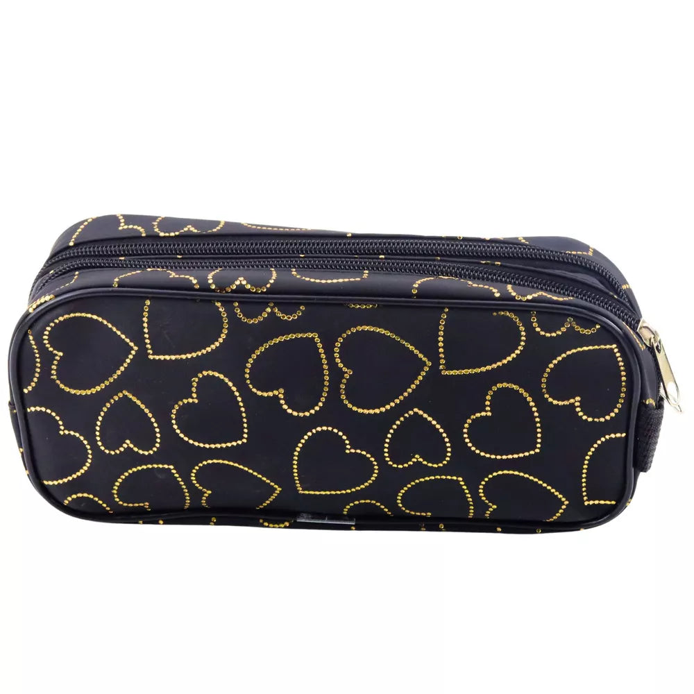 Pieštukų dėklas mokyklai ir biurui, su dviem skyriais, su auksinėmis širdutėmis, juodas, 23,5x10 cm
