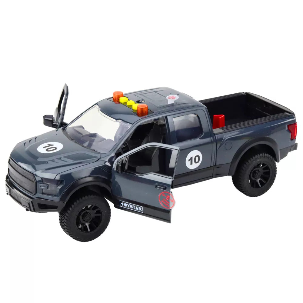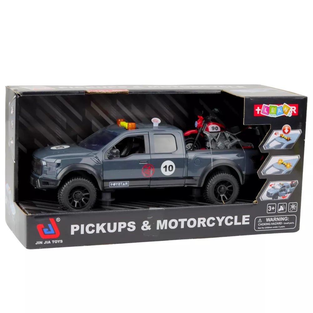 Didelis pikapo modelis su motociklu yra idealus žaislas vaikams, mėgstantiems bekelės transporto priemones, realistiškas detales ir interaktyvų žaidimą. Transporto priemonė buvo sukurta atsižvelgiant į jauniausius automobilių entuziastus, siūlanti daugybę funkcijų, kurios praturtina linksmybes ir stimuliuoja vaizduotę. Automobilis turi atidaromas duris ir galinį bagažinės atvartą, kuris palengvina motociklo pakrovimą ir suteikia autentiškumo visai konstrukcijai. Galimybė įdėti ir išimti motociklą iš pikapo lovos leidžia kurti veiksmo scenarijus, gelbėjimo misijas ar bekelės lenktynes.