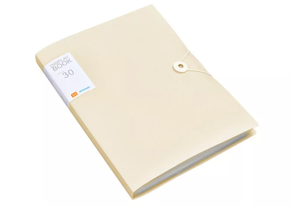 Plastikinis segtuvas su gumine juostele, 30 lapų, smėlio spalvos, A4