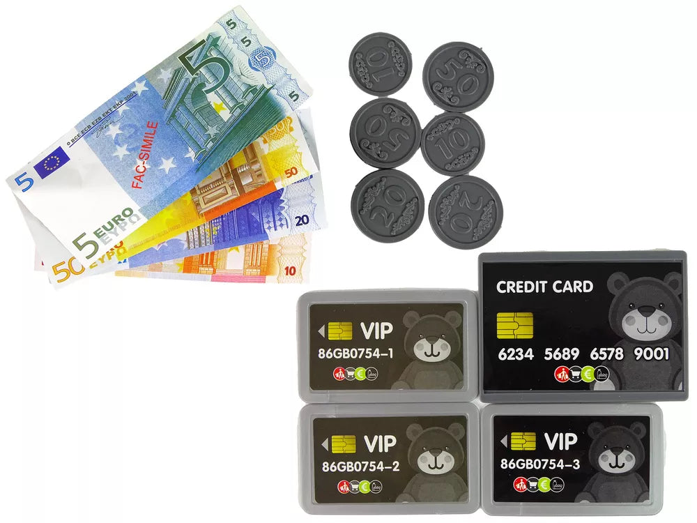 Be to, jame yra įvairių produktų, pinigų ir kortelių, kurie leidžia imituoti apsipirkimą ir lavinti matematinius įgūdžius.