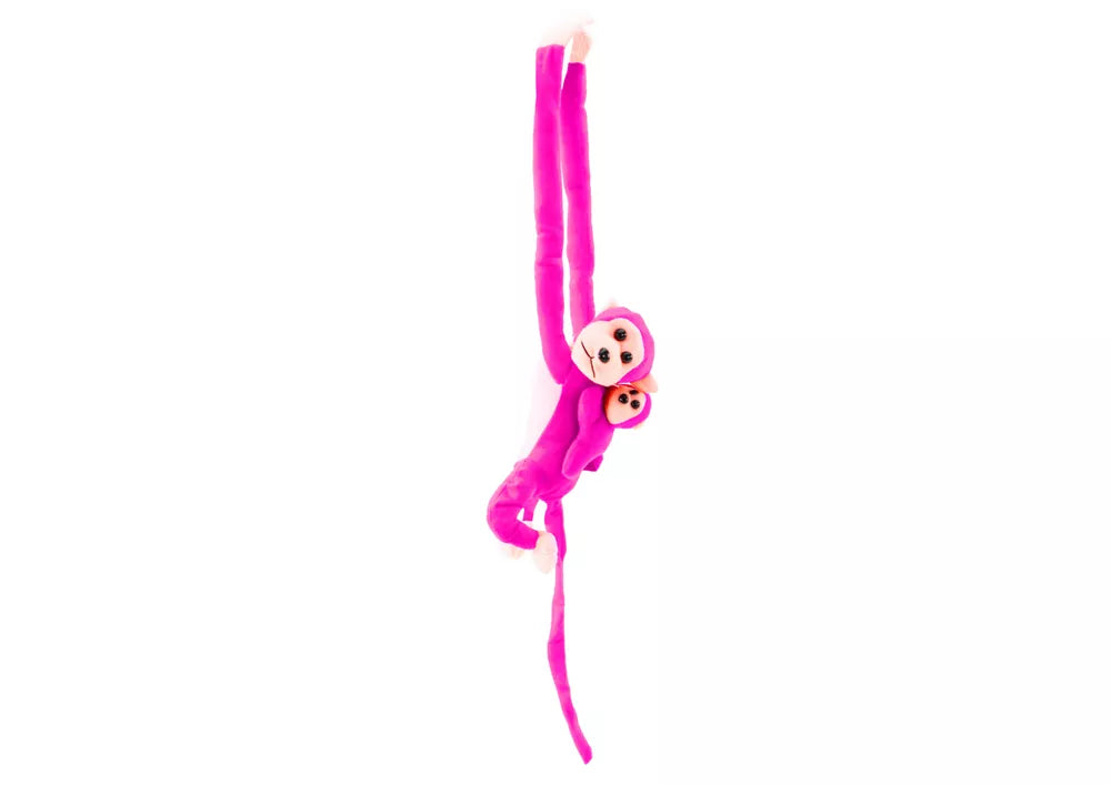 Pliušinė beždžionė su kūdikiu, tamsiai rožinė, su garsu 70 cm