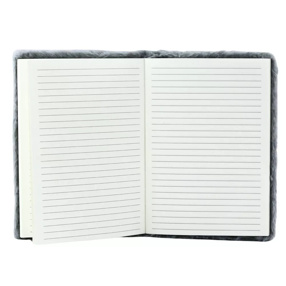 PLIUŠINIS PILKO KIŠKIO UŽRAŠŲ KNYGELĖ SU LINIJUOTĖMIS, 80 A5 PUSLAPIŲ