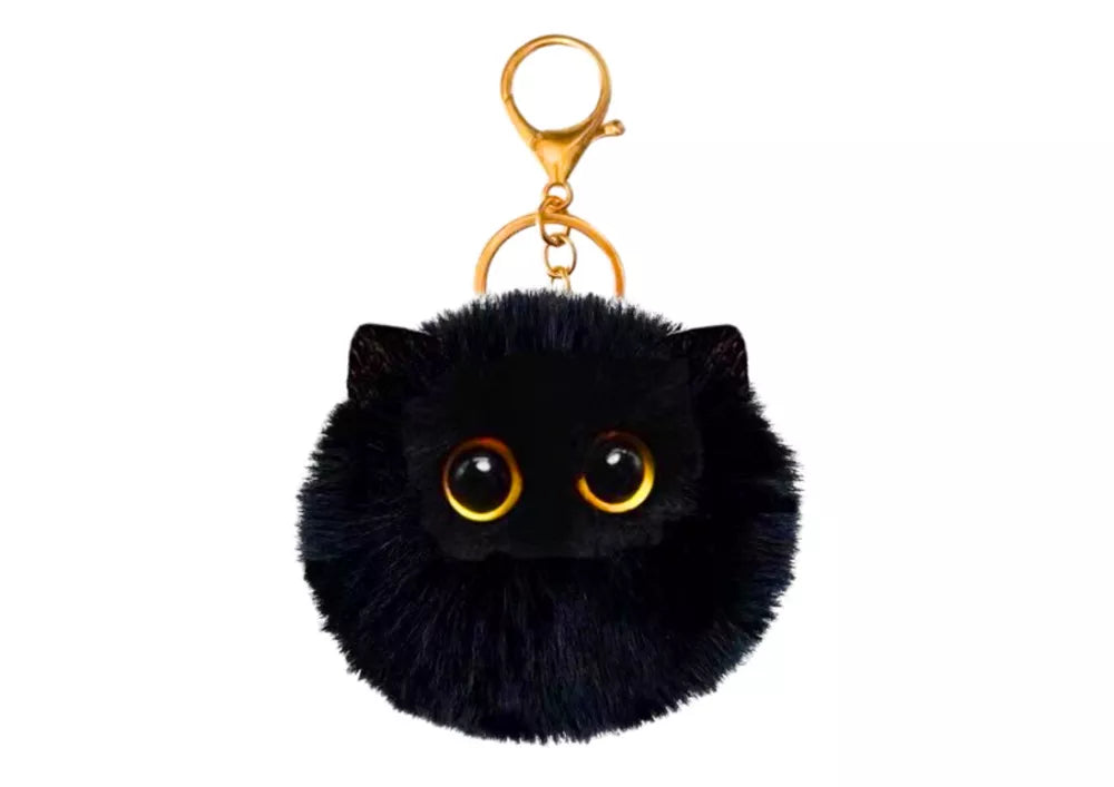 Pliušinis katės raktų pakabukas-ornamentas Akys Ausys Juodas