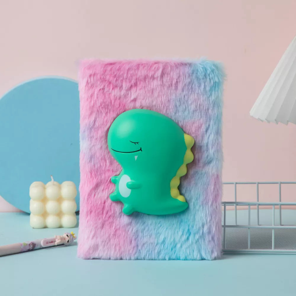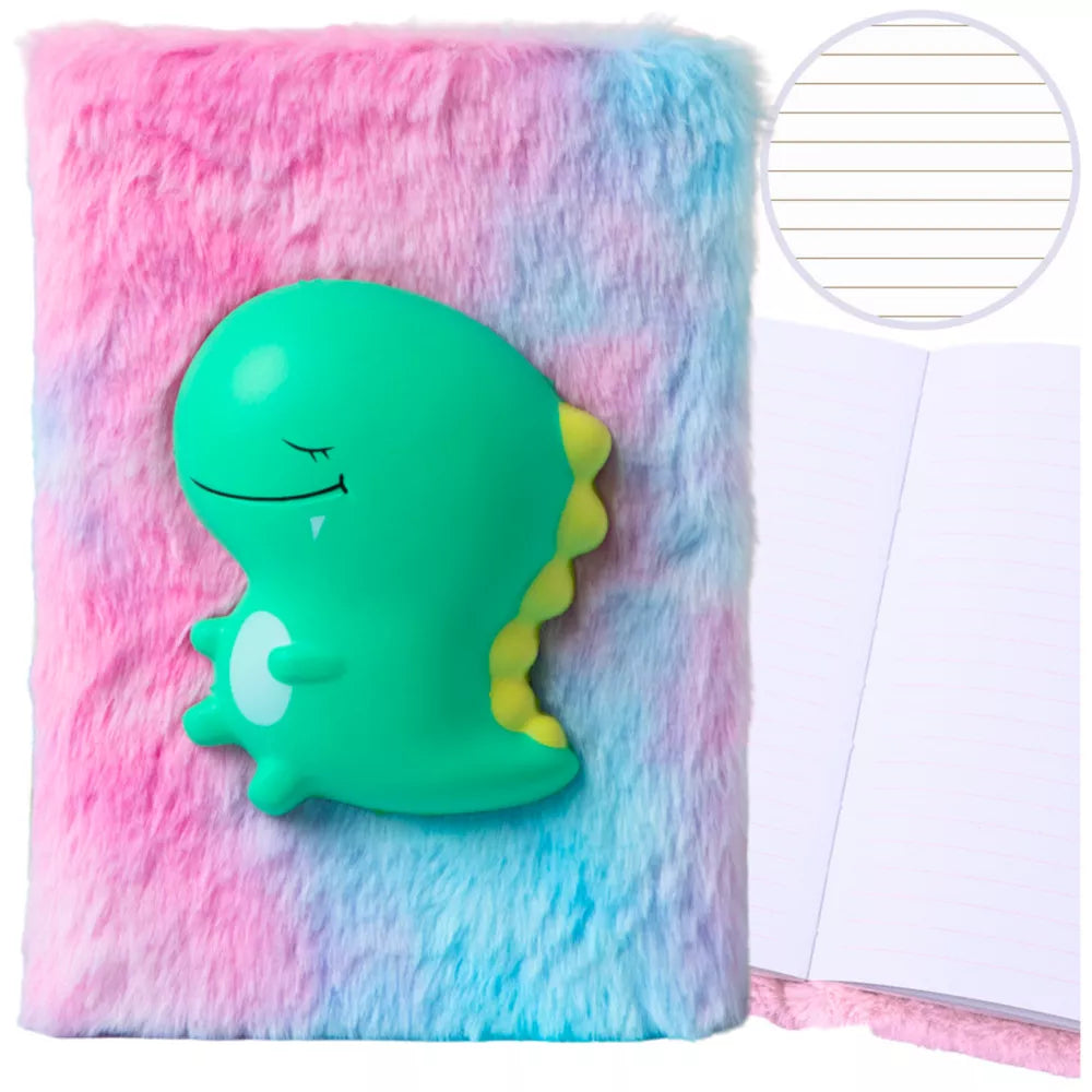 Pliušinis sąsiuvinis su žalios spalvos dinozauru, 3D, spalvingas