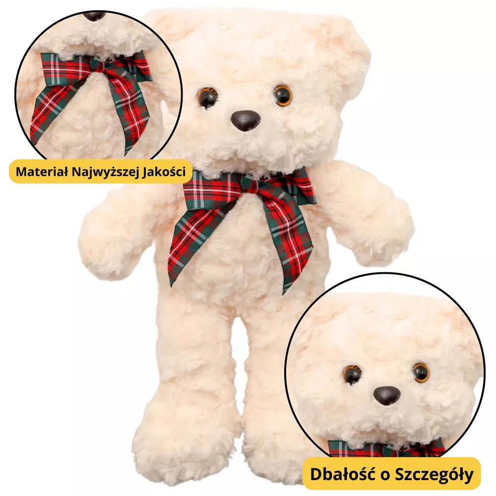 Pliušinis talismanas, meškiukas su kaspinėliu, baltas, 30 cm