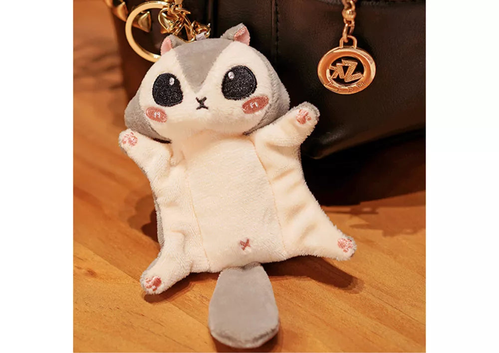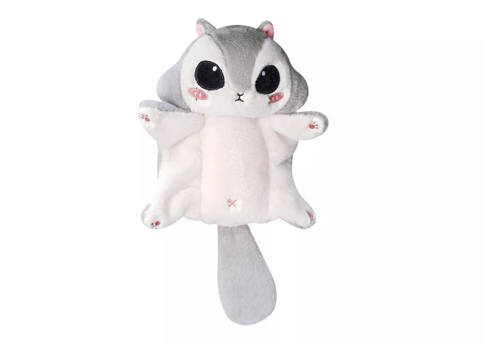 Pliušinis talismanas skraiduolė voverė pilkas raktų pakabukas 10 cm