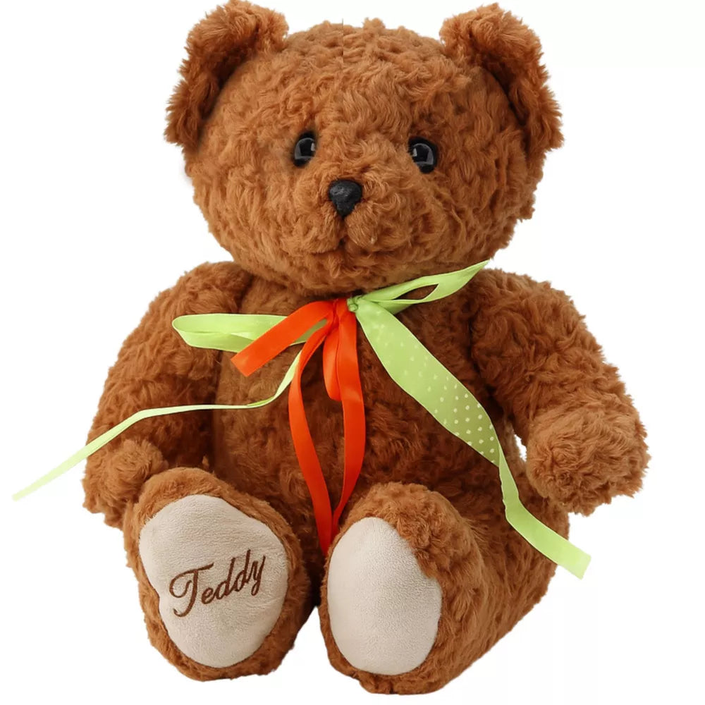 Pliušinis žaislas Meškinas, žalia-raudona kaspinė, rudas, 30cm