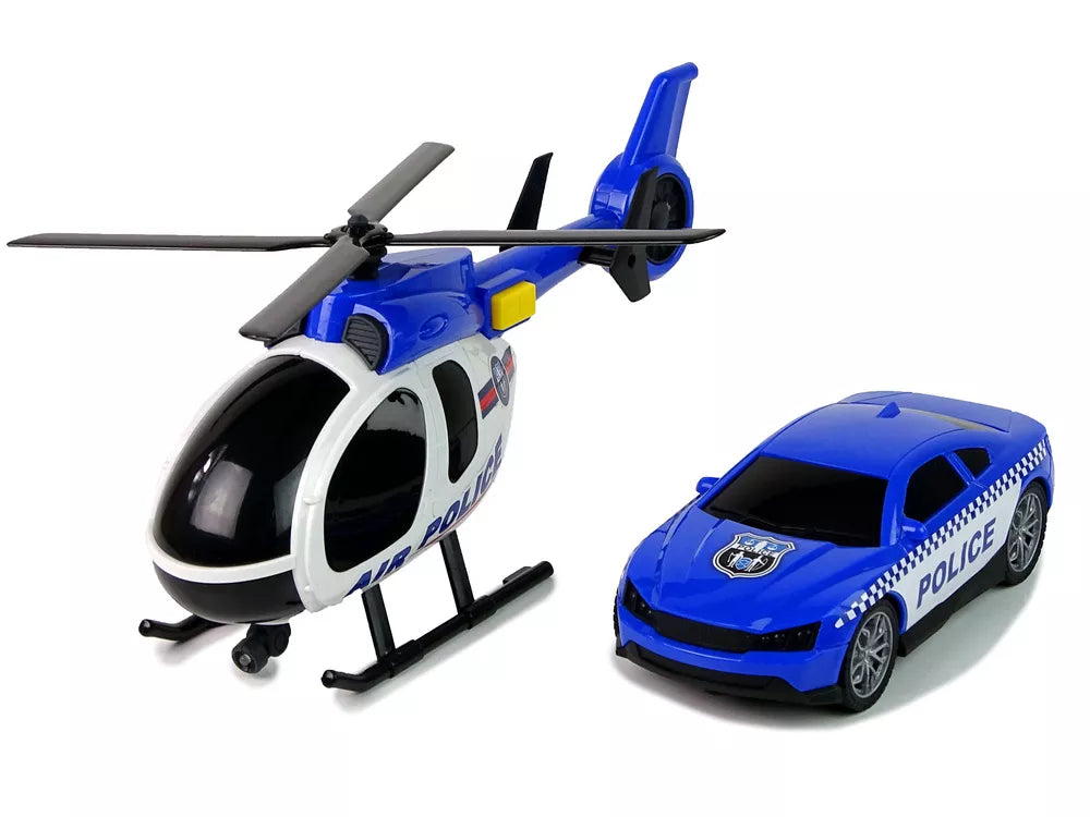 Policijos rinkinys: tralas, automobilis, sraigtasparnis su garso ir šviesos efektais ⭐
