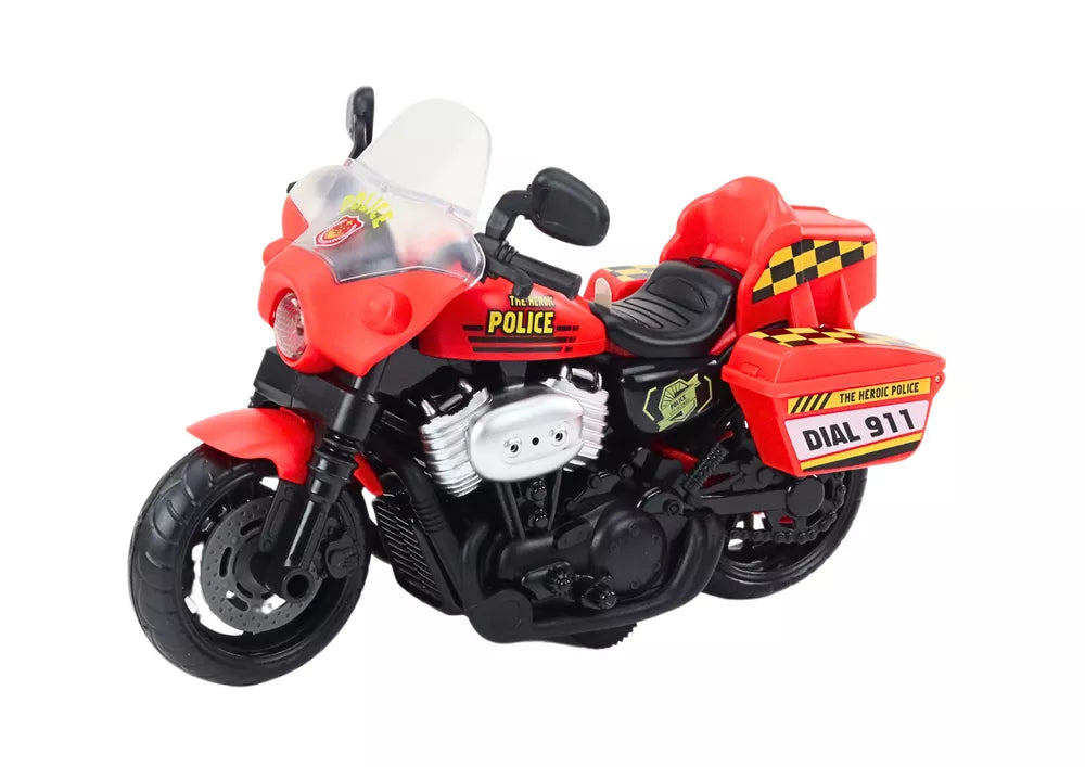 Motociklas aprūpintas šviesos ir garso efektais, kurie suteikia žaidimui papildomo realistiškumo ir patrauklumo. Garsai primena sirenas, kurios leidžia vaikams įsivaizduoti policininko vaidmenį ir žaisti įvairius scenarijus, susijusius su saugumu ir intervencijomis. Vienas pagrindinių šio motociklo privalumų yra frikcinė pavara. Jos dėka, pastūmus ir paleidus, motociklas gali judėti į priekį, o tai suteikia žaidimui dinamikos. Vaikai gali stebėti transporto priemonės judėjimą, o tai didina jų įsitraukimą ir smalsumą.