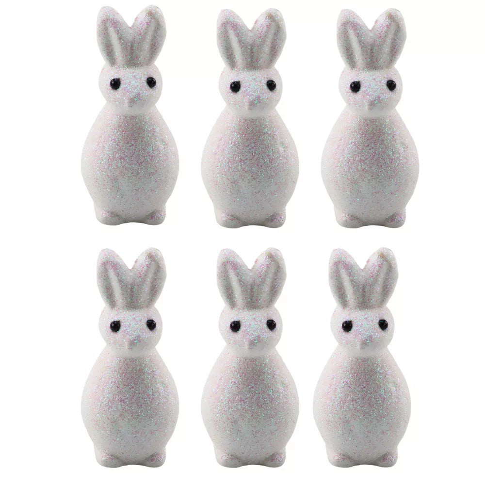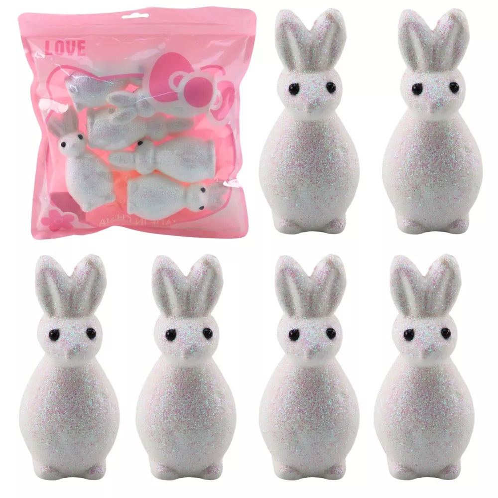 6 putplasčio kiškučiai, padengti blizgučiais (balti)
