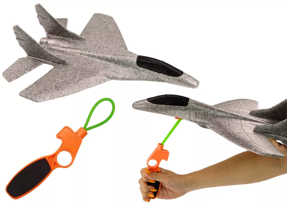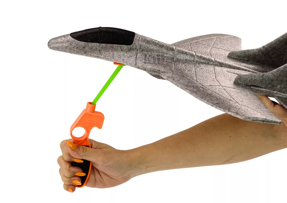 Lėktuvas komplektuojamas su gumine juostele, kuri prideda veiksmo ir emocijų. Pritvirtinus gumą prie lėktuvo apačios, tiesiog paleiskite jį su trenksmu ir jis pakils į orą, pasiruošęs puikiems skrydžiams.