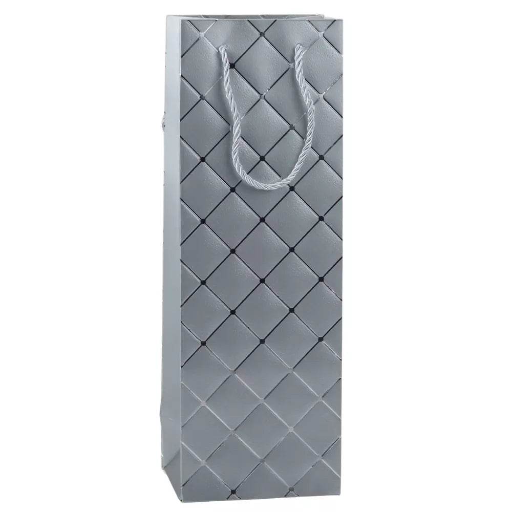 Elegantiškas dovanų maišelis buteliui yra puikus pasirinkimas bet kokiai progai. Pagamintas iš aukštos kokybės popieriaus, maišelis pasižymi moderniu ir stilingu raštu sidabrinio tinklelio pavidalu, kuris suteikia jam nepakartojamo prašmatnumo. Dėl metalinio blizgesio ir geometrinio motyvo maišelis atrodo itin įspūdingai ir elegantiškai.