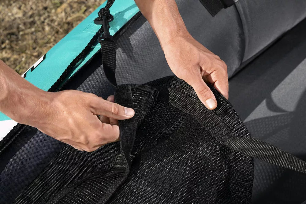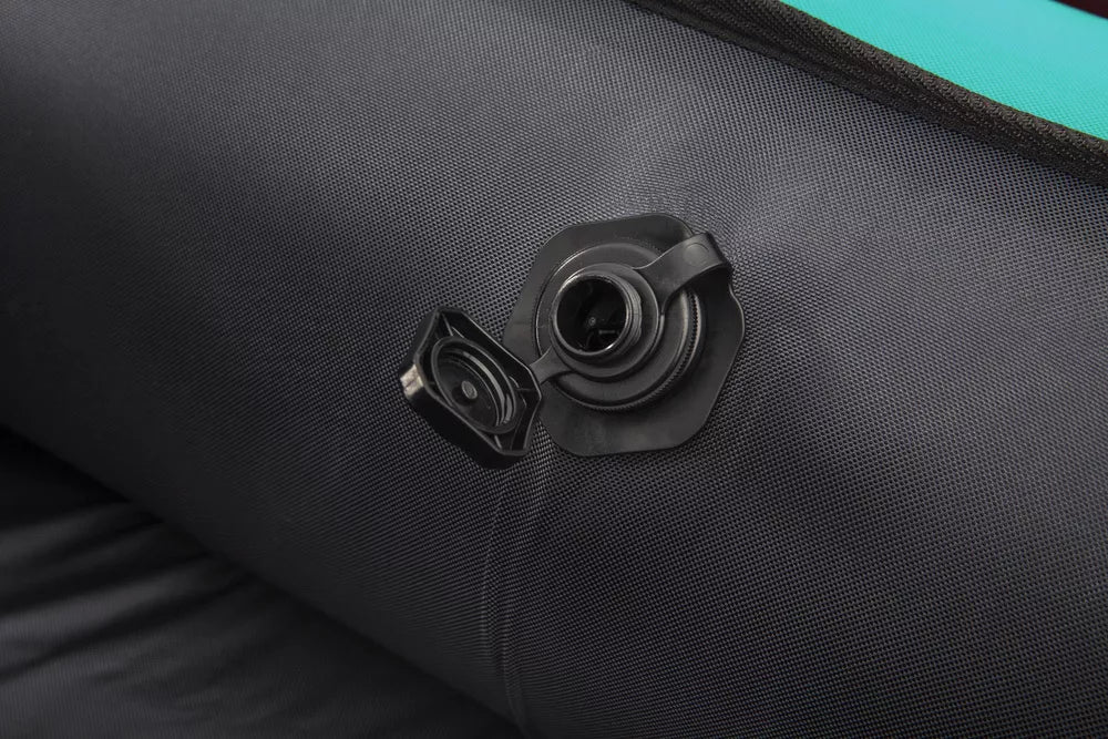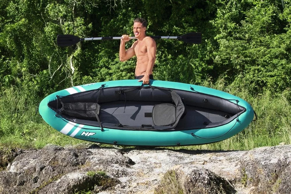 Išvyka prie vandens yra ideali laisvalaikio praleidimo forma. Norėdami paįvairinti šį nerūpestingą laiką, pasirūpinkite papildomais baseino priedais. Kajakas taip pat puikiai tiks rekreacinei išvykai į ežerą ar baseiną. Jis pagamintas iš patvaraus, pažeidimams atsparaus vinilo. Audinys yra atsparus aliejui, atstumia vandenį ir atlaiko intensyvius UV spindulius. Aukštos kokybės nailono apvalkalas taip pat yra atsparus pradūrimams ir sukurtas atlaikyti atšiaurius ir dažnai akmenuotus upių vandenis. Galėsite manevruoti vingiuotomis upėmis, ežerais, ramiuose atviruose vandenyse arba bangų atoslūgiuose ir potvyniuose. Sukurtas su reguliuojamais atlošais patogumui ir atramai. Be daiktų skyriaus, esančio laivo konstrukcijoje, taip pat yra nuimamas krepšys, leidžiantis turėti prieigą prie būtiniausių daiktų irkluojant vandeniu. Dvigubo mentės irklai yra aliumininiai, lengvi ir tolygiai laikomi saugiais skląsčiais. Visiškai pripūstas rankiniu siurbliu, kajakas yra 2,80 m ilgio ir gali išlaikyti iki 130 kg. Jis turi tvirtas drobines rankenas iš abiejų pusių, todėl kajaką nešti yra vieni juokai. Kajakas turi nuimamus pelekus, kurie padeda išlaikyti krypties stabilumą ir padidina greitį. Norėdami laikyti, tiesiog atjunkite pelekus nuo kajako, kad gautumėte itin kompaktišką, vietą taupantį komponentą.
