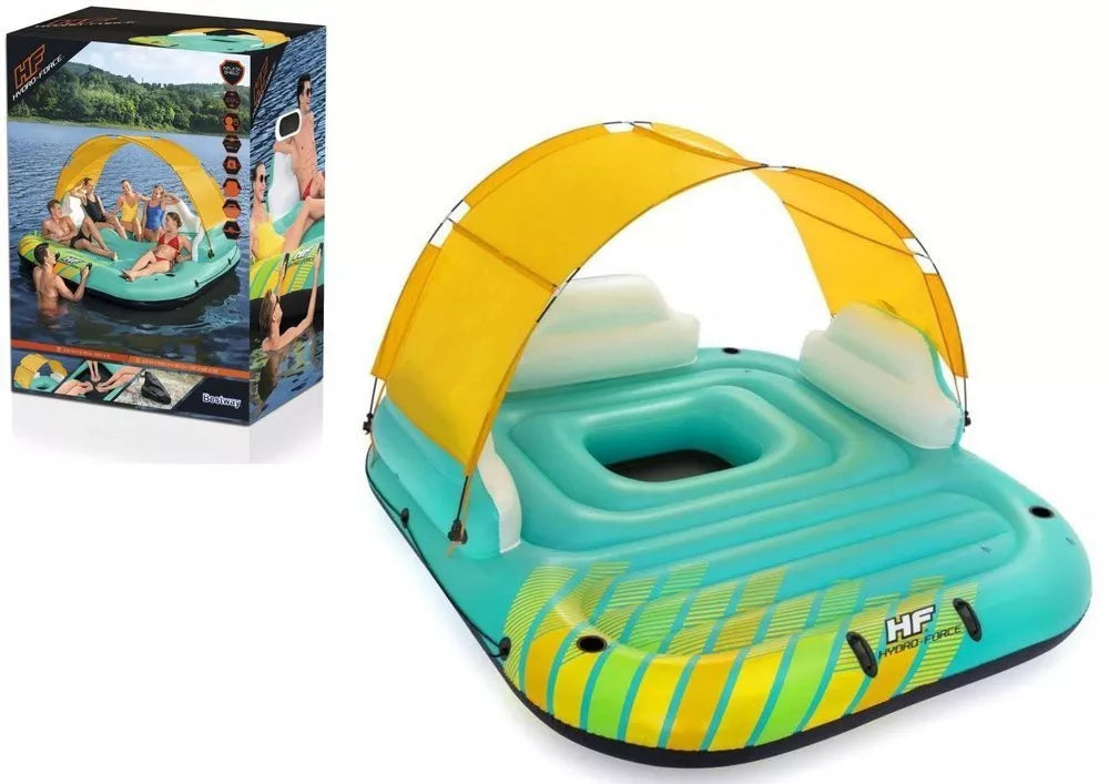 Sistemos, įtrauktos į čiužinį, užtikrina tinkamą jo elastingumą. Geltoną stogą, kuris apsaugo nuo saulės spindulių, galima lengvai nuimti pašalinus atspalvį, todėl čiužinys puikiai tinka ir deginimuisi saulėje. Pripučiami atlošai leis patogiai jaustis, o gėrimų laikikliai palengvins greitą prieigą prie mėgstamų gėrimų. Čiužinyje taip pat yra rankenos ir virvės, kurios palengvina čiužinio transportavimą iki krašto. Čiužinio viduje taip pat yra nedidelis kojų vėsinimo baseinas. Rinkinyje taip pat yra remonto lopas. Čiužinys pagamintas iš patvarios medžiagos, tokios kaip vinilas.