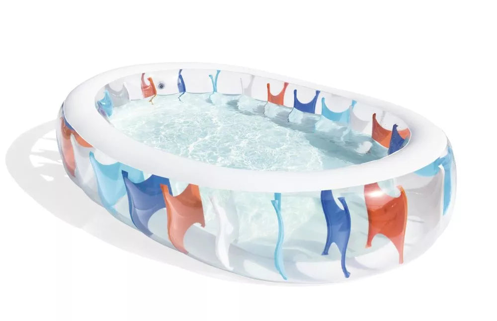 Didelis, patikimas baseinas visai šeimai, kuriame vaikai galės laisvai plaukioti. Baseinas yra lengvas, todėl jį galima lengvai perkelti ten, kur šilčiausia tam tikru dienos metu. Jis turi plačias pripučiamas sienas ir puikiai tinka vasaros poilsiui. Jis leis jūsų vaikui judėti ir žaisti vandenyje. Puikiai tinka vaikams nuo 6 metų. Jį lengva pripūsti ir išleisti orą, todėl jį laikyti nebus problema.