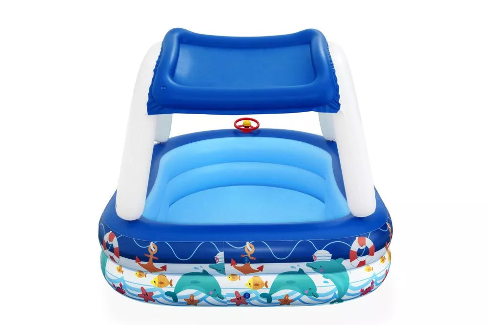 Didelis, patikimas baseinas visai šeimai, kuriame vaikai galės laisvai plaukioti. Baseinas yra lengvas, todėl jį galima lengvai perkelti ten, kur šilčiausia tam tikru paros metu. Jis turi du pripučiamus žiedus ir puikiai tinka vasaros poilsiui. Tai leis jūsų vaikui judėti ir žaisti vandenyje. Puikiai tinka vaikams nuo 3 metų. Jį lengva pripūsti ir išleisti orą, todėl laikyti nebus problema. Nuimamas saulės stogelis, pritvirtintas prie baseino, efektyviai apsaugos jus ir jūsų artimuosius nuo saulės spindulių.