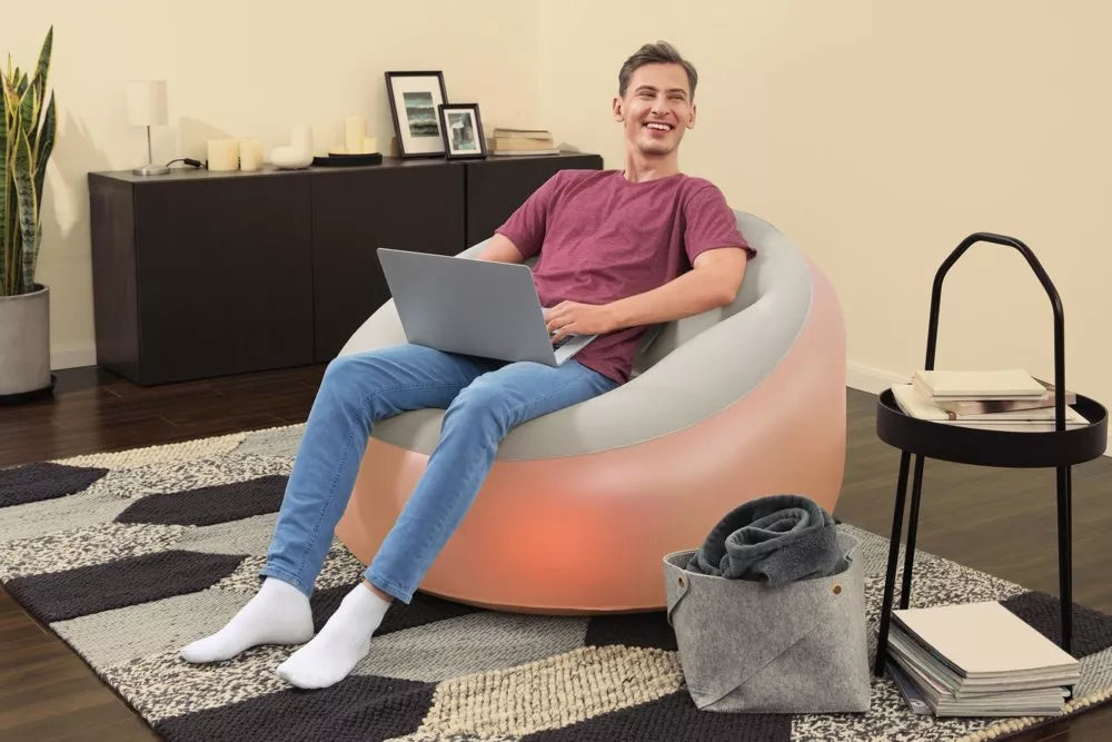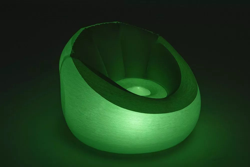 Pripučiamą kėdę lengva įrengti, ji užima minimaliai vietos sandėliuojant ir yra itin patogi. Dėl savo tvirtos struktūros ir erdvios viršutinės dalies ši kėdė puikiai tinka, kai atvyksta svečiai, užpildyti laisvą kambarį, žiūrėti žaidimą arba kaip baldai bendrabučio kambariui. Kėdės dizainas užtikrins maksimalų komfortą, nesvarbu, ar atsigulsite, išsitiesite, ar sėdėsite tiesiai. Apšvietimui prijungti reikalingos baterijos, jos į komplektą neįeina.