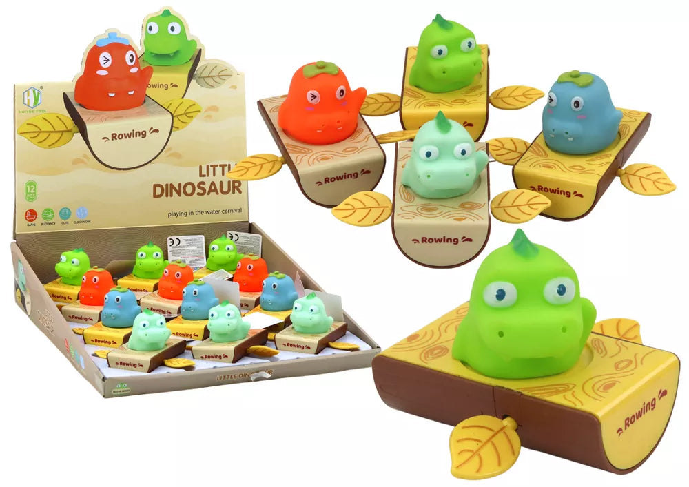 Vėjo prisukamas žaislas voniai Dinozauras valtyje