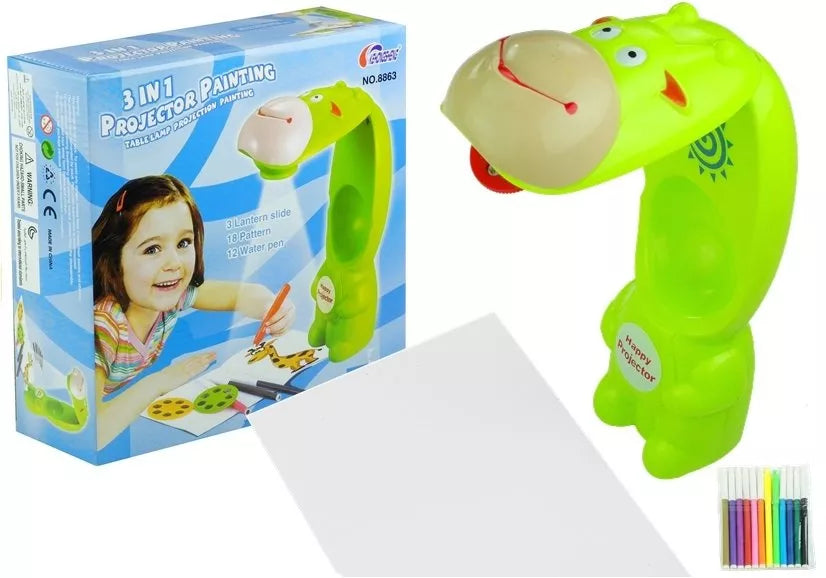 COW 3-IN-1 PIEŠIMO PROJEKTORIUS ŽALIASIS – PROJEKTORIUS SU RAŠTAIS IR MARKERIAIS