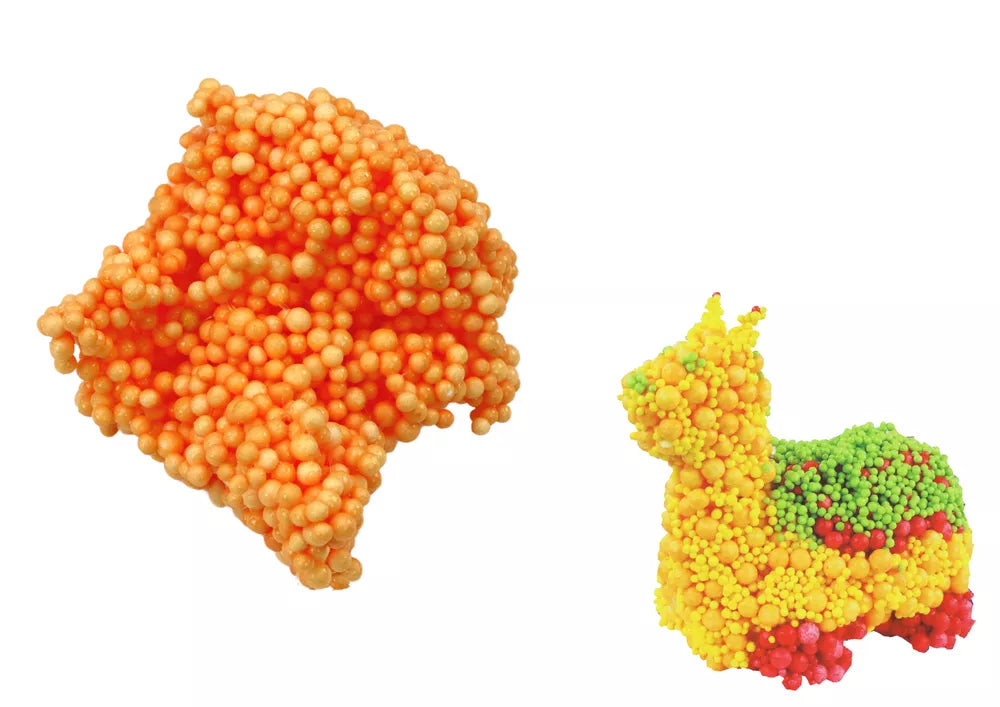 Suspaustos polistirolo granulės oranžinės spalvos! Šios unikalios granulės yra patalpintos patogiame puodelyje ir sujungtos specialiais klijais, kurie nepalieka lipnaus sluoksnio ant rankų, sukuriant vienalytę, lengvai formuojamą masę.