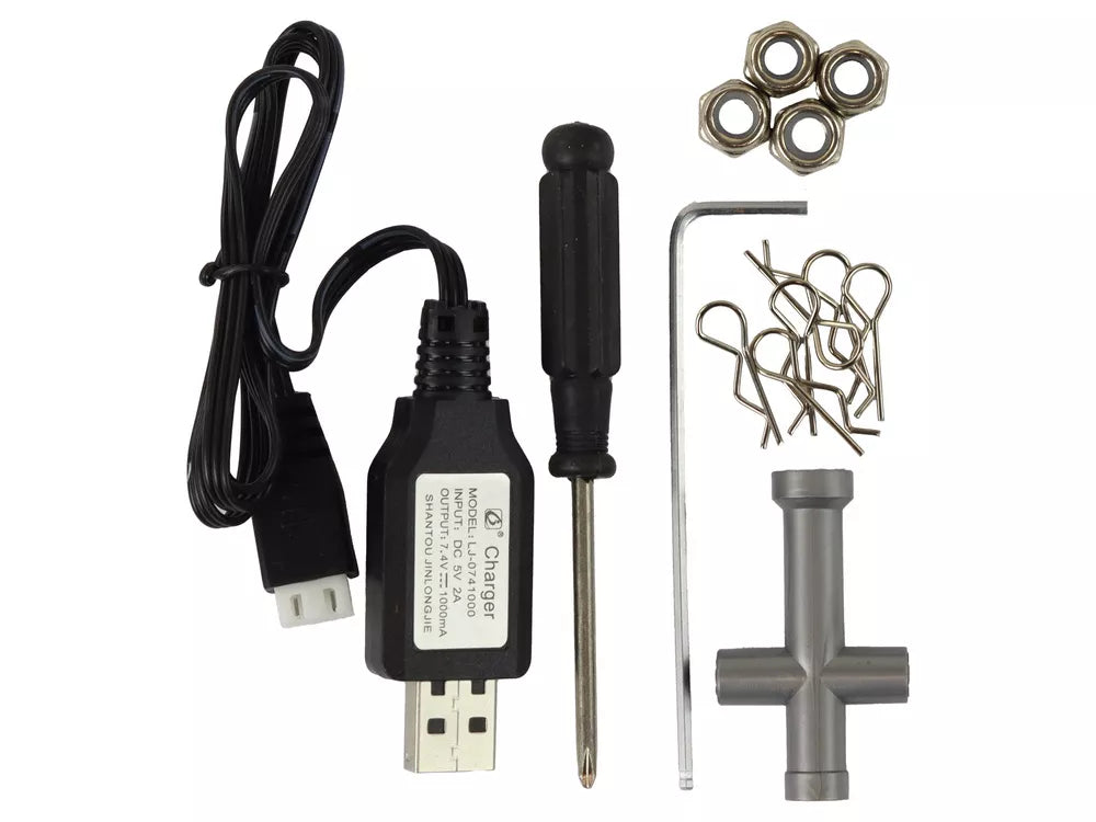RC automobilyje yra didelės talpos 1400 mAh baterija ir USB įkroviklis, kurie užtikrina ilgą tarnavimo laiką ir greitą įkrovimą.