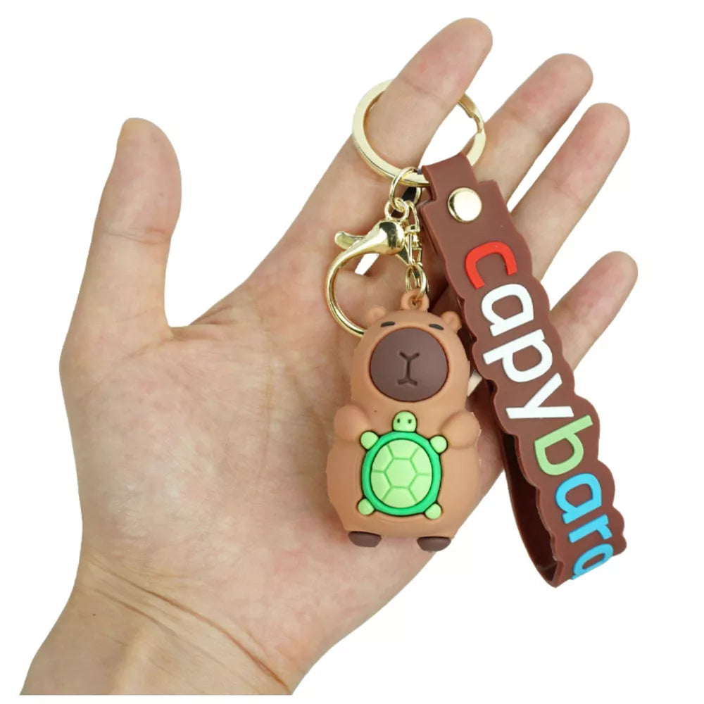 Raktų pakabukas su kapibaros figūrėlės ir vėžliuko pakabuku, karabinas