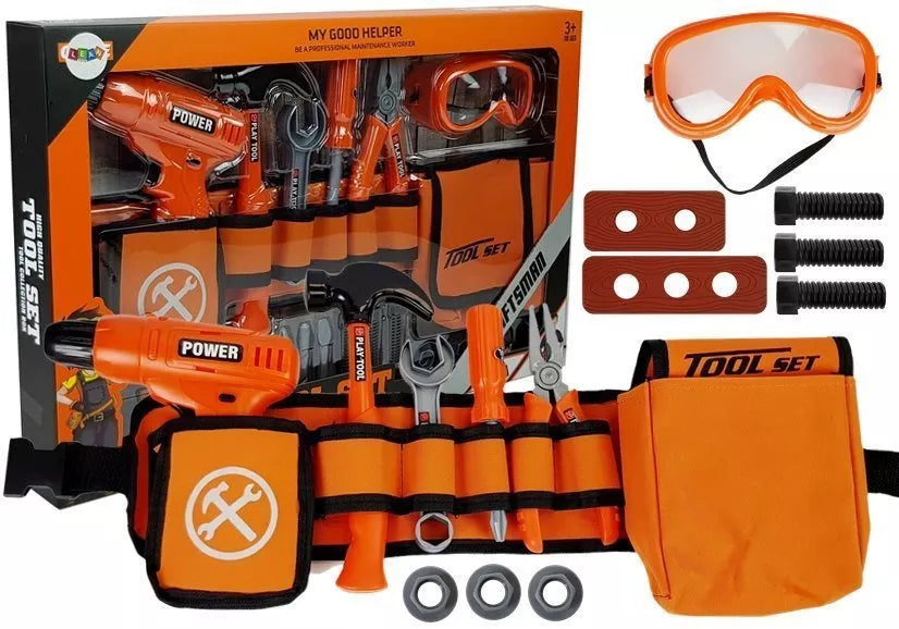 Rinkinys aprūpintas stilingu įrankių diržu, kuris suteikia profesionalumo įvaizdį kiekvienam mažam konstruktoriui. Jo dėka visi reikalingi įrankiai visada yra po ranka, o platus reguliavimas leidžia pritaikyti diržą vaikui. Diržas turi daug skyrelių, kurie palengvina organizavimą ir patogų įrankių laikymą. Jis užsegamas sagtimi, kuri užtikrina stabilumą ir komfortą žaidimo metu.