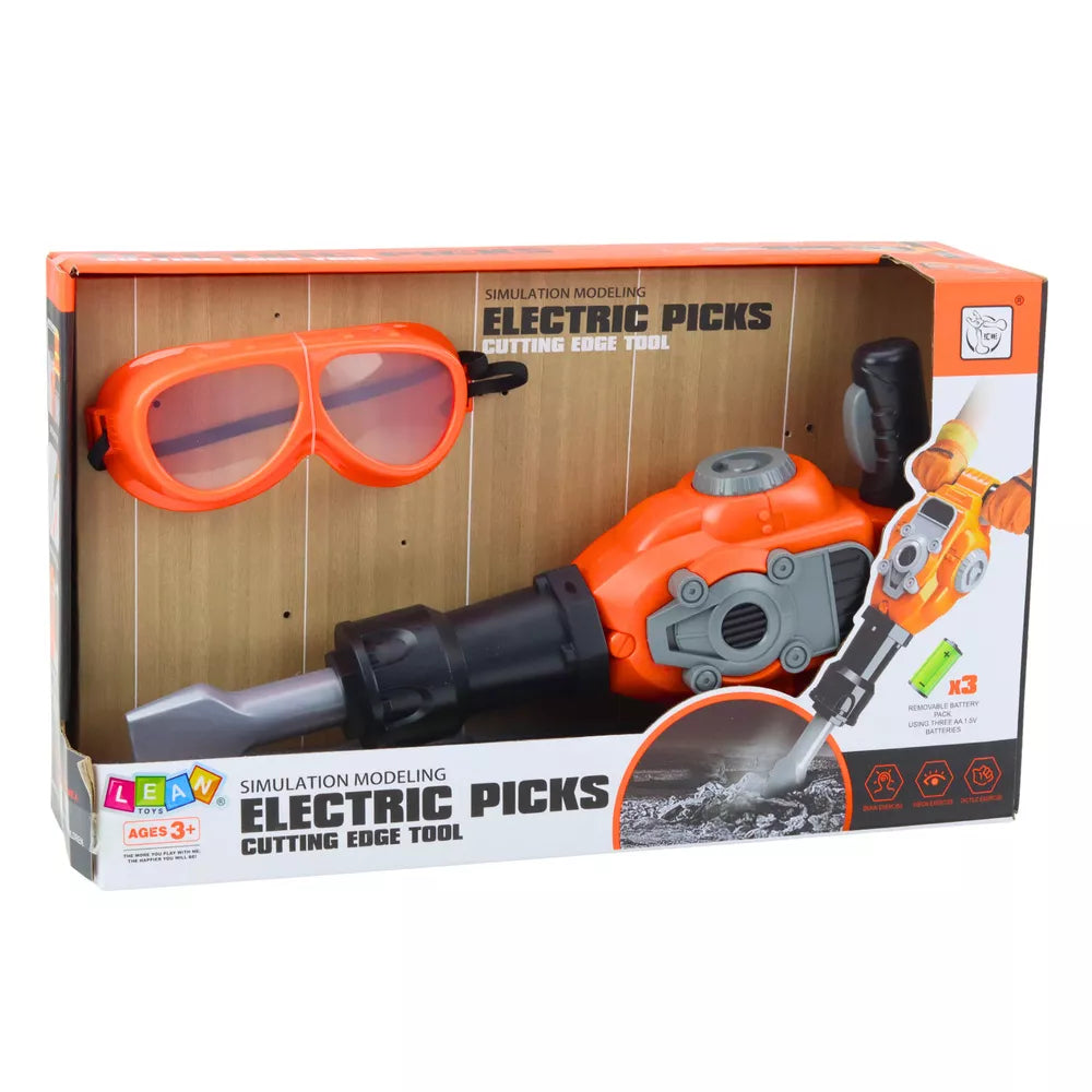 Žaislinis pneumatinis plaktukas su apsauginiais akiniais – puiki idėja vaikams, mėgstantiems žaisti „pasidaryk pats“ ir imituoti suaugusiuosius darbe. Šis tikroviškai atrodantis oranžinis rinkinys leidžia kūrybiškai ir saugiai žaisti, lavinant vaizduotę ir rankų įgūdžius.
