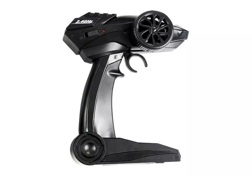 R/C nuotoliniu būdu valdomas akumuliatorinis automobilis juodos ir žalios spalvos yra transporto priemonė, garantuojanti vartotojui puikią pramogą! Jis turi daug funkcijų, kurių nėra kituose valdomų transporto priemonių modeliuose, tokių kaip 4x4 pavara, amortizatoriai ir atsparumas kritimui. Aukšta pakaba ir dideli ratai leidžia be problemų važiuoti nelygiu reljefu! Automobilis valdomas 2,4 GHz nuotolinio valdymo pulteliu, kuris užtikrina nuolatinį ryšį su transporto priemone.