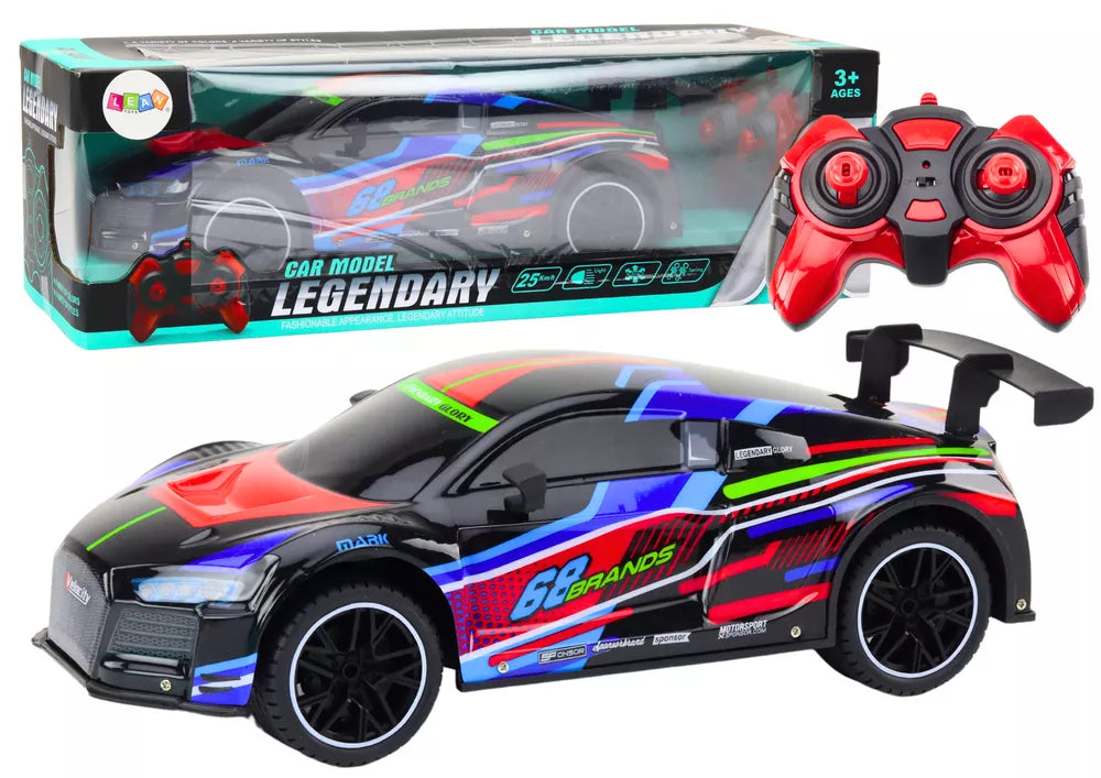 Šis įspūdingas nuotoliniu būdu valdomas sportinis automobilis 1:10 masteliu tikrai patiks greičio ir modernaus dizaino mėgėjams. Automobilis išsiskiria elegantiška juoda spalva su kontrastingais mėlynais ir raudonais elementais, kurie suteikia jam dinamišką ir sportišką išvaizdą. Kiekviena automobilio detalė buvo kruopščiai sukurta, kad atspindėtų tikro sportinio automobilio išvaizdą. Sportiškos linijos, einančios per visą kėbulą, ir estetiška apdaila, įskaitant stilingą eleroną transporto priemonės gale, suteikia agresyvumo ir pagerina aerodinamiką.